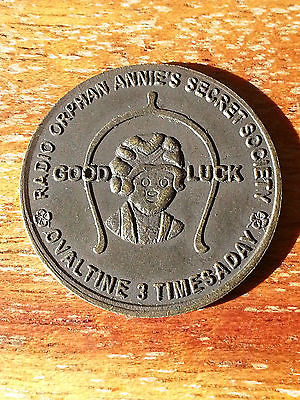 Title (ebay affiliate link): 1934 RADIO ORPHAN ANNIE OVALTINE PREMIUM GOOD LUCK TOKEN COIN