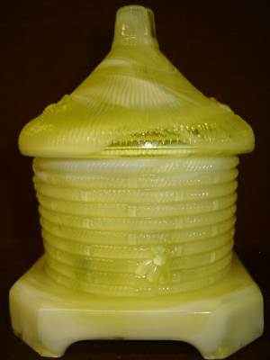 VASELINE MILK SLAG URANIUM ART GLASS HONEY BEE JAR POT