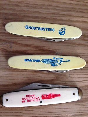 Lot of 3 Vintage Pocket Knives Advertisement Coca-Cola, Star Trek, Ghostbusters