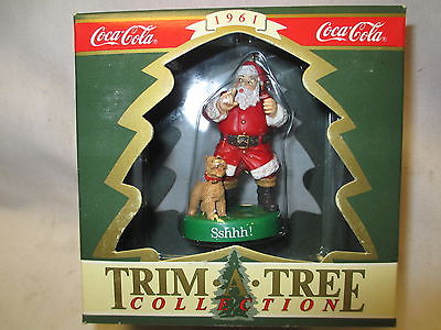 Title (ebay affiliate link): COCA-COLA SANTA CHRISTMAS ORNAMENT TRIM A TREE 1961 ARTWORK Sshhh! DOG