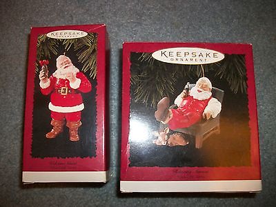Title (ebay affiliate link): 2 Hallmark Coca-Cola Santa Series ornaments. 1993 Relaxing Moment & 96 Welcome