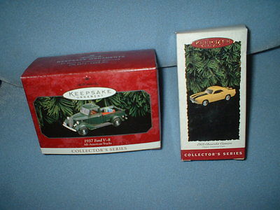 Hallmark Ornaments/Lot of 2-1969 Chevy Camaro & 1937 Ford V-8-IB