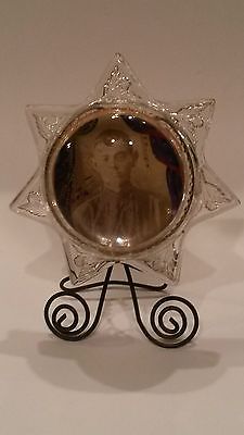 VINTAGE HEAVY GLASS 7 POINTED STAR FRAME WITH US CIVIL WAR SOLDIER PICTURE RARE