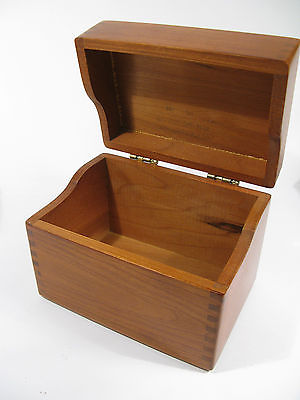 Vintage Fingerjoined Solid Cherry Desk-Top Index Card Filing Box.