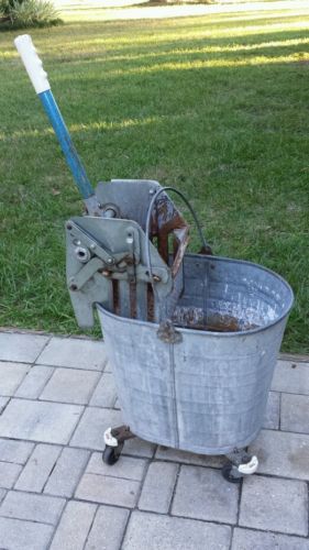 Title (ebay affiliate link): VINTAGE INDUSTRIAL GALVANIZED METAL MOP BUCKET & WRINGER PERFECT MID CENTURY