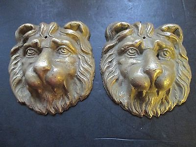 Set of 2 Vintage Ornamental Lion Heads, Solid Brass Castings, 4" x 4-1/2"