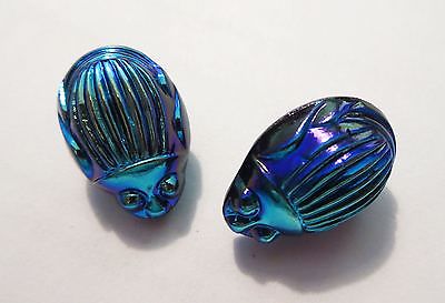 SCARAB Favrille GLASS Buttons PAIR BLUE