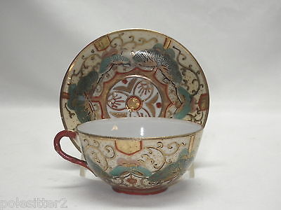 Antique Japanese Porcelain Hand Painted Butterfly Medallions Tea Cup & Saucer