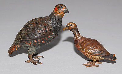 2 Antique Vienna Cold Painted Bronze Bird Figurines