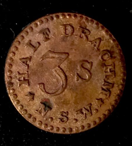 Rare Antique Half Drachm Pc Toned Patina Apothecary Weight Coin HT Philly 11105