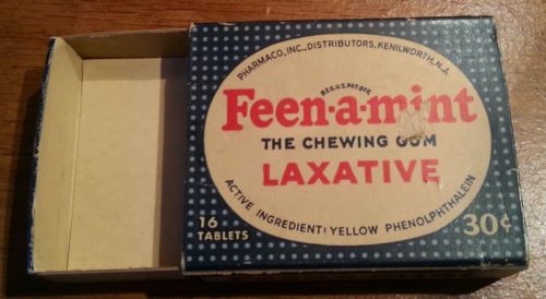 Title (ebay affiliate link): FEEN-A-MINT~ LAXATIVE GUM BOX ~ EUC~ PHARMACO Inc. Vintage Medicine -pre 1937