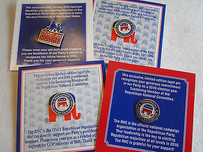 Title (ebay affiliate link): Set of 4 Republican National Committee Campaign Pins 2008, 2007, 2010. 2012