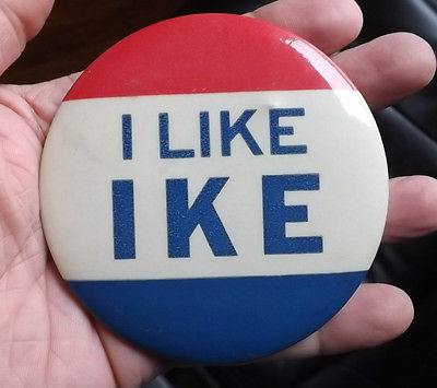 Title (ebay affiliate link): 1952 PRESIDENT DWIGHT D. EISENHOWER I LIKE IKE BUTTON PINBACK PIN LARGE 3.5" OLD