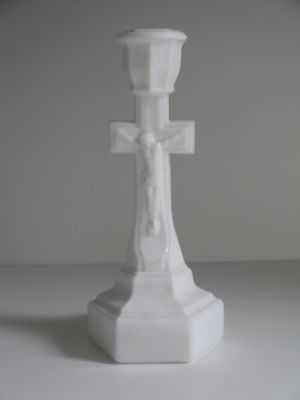 EAPG Milk White FLINT Glass Crusifix Candlestick c1870