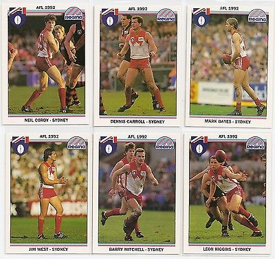 REGINA 1992 VFL/AFL FOOTBALL CARD LOT x6 Sydney MINT