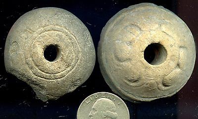Title (ebay affiliate link): Pre-Columbian 2 Decorated AZTEC SPINDLE WHORLS :ca:100 BC-500 AD