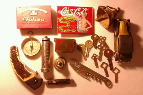Antique & vtg junk drawer lot 20 pce keys brass knives coca cola coin bank bulk