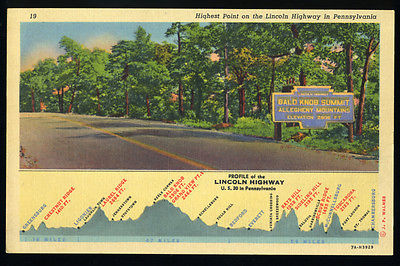 Title (ebay affiliate link): Highest Point on the Lincoln Highway (US 30) in Pennsylvania Bald Knob 1940s PA