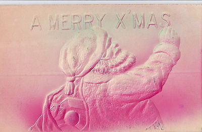 Santa Antique "A Merry X Mas with Heavy Embossing Early 1900s P/C