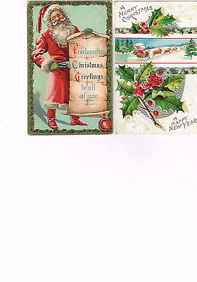 4 Card Holiday Lot, Christmas Santas, in Sleigh, Children Kneel-Beg, Red Robes!