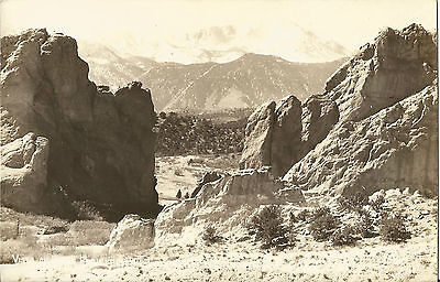 Title (ebay affiliate link): Vista of Pikes Peak From Gateway of Garden of the Gods, Colorado, EKC - RPPC