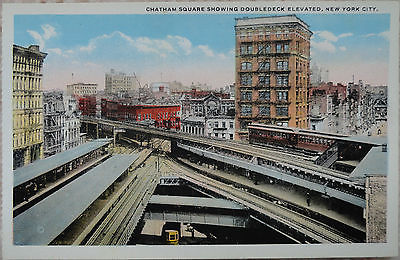 Vintage - Postcard - Chatham Square Showing Double Deck Elevated - New York City