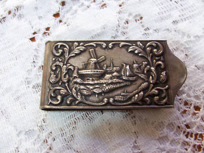 Title (ebay affiliate link): VINTAGE ANTIQUE SILVER MONEY CLIP DUTCH WINDMILL SCENE