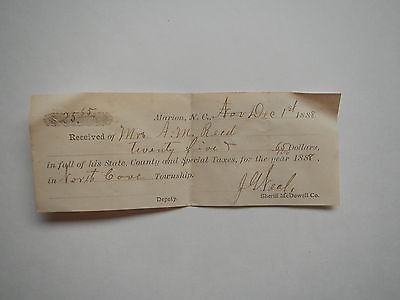 Antique Document 1888 Sheriff Marion North Carolina McDowell Co. Money VTG Paper