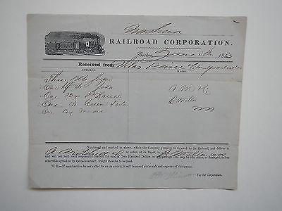 Railroad Document 1853 Nashua Railroad Corporation Paper Train Illustration VTG