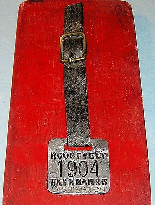 PRESIDENT THEODORE ROOSEVELT 1904 CAMPAIGN WATCH FOB + STRAP FAIRBANKS TEDDY TR