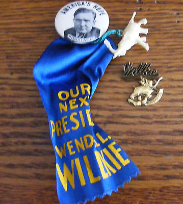 Wendell Wilkie Presidential Campaign Buttons President Pinback Pins Roosevelt