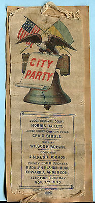 1905 PHILADELPHIA CITY PARTY POLITICAL BALLOT on SILK RIBBON Liberty Bell