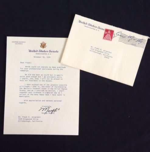 Title (ebay affiliate link): Letter and Envelope from Actor and U.S. Senator George Murphy To My Grandfather