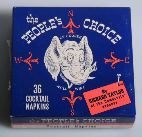 Title (ebay affiliate link): D839 VINTAGE PEOPLE'S CHOICE Republican Cocktail Napkins By E. ERRETT SMITH 1952