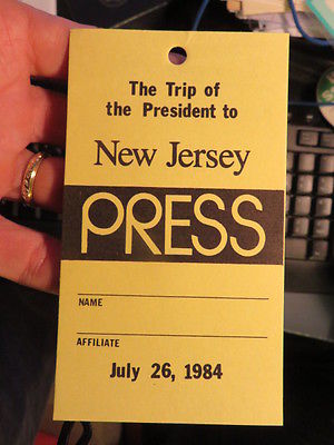 Title (ebay affiliate link): 1984 Reagan White House Presidential Press Pass Trip to New Jersey