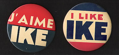 Title (ebay affiliate link): 2 large DWIGHT IKE EISENHOWER 3 1/2 inch buttons J'AIME IKE, I LIKE IKE