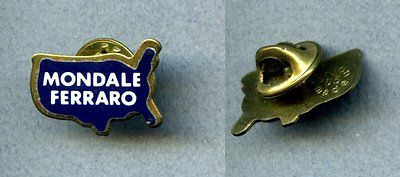 1984 Mondale Ferraro USA map pin approximately 1/2" x 3/4" label on metal