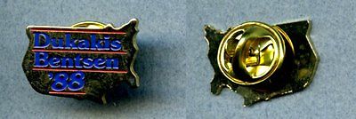 Title (ebay affiliate link): 1988 Dukakis Bentsen '88 USA map shape pin approximately 9/16" x 13/16" metal