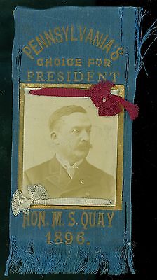 Title (ebay affiliate link): Vintage 1896 Pennsylvania Senator Quay Presidenital Hopeful Political Ribbon