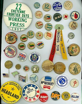 Title (ebay affiliate link): 44 Vintage 1930s - 80s Advertising Flags & Political Campaign Pinback Buttons
