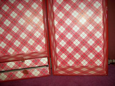 Title (ebay affiliate link): Vtg Antique Red Metal Steamer Doll Closet Trunk 18.25'