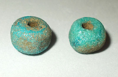 2 Ancient Egyptian Faience Beads 100AD Matched, RARE, 12mm diameter