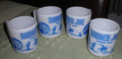 SET OF 4 HAZEL-ATLAS RANGER JOE MILK GLASS MUG - NICE