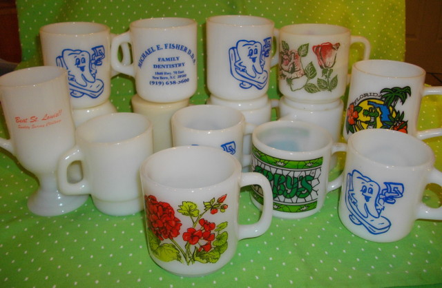 VINTAGE LOT 15 ANCHOR HOCKING FIRE KING MILK GLASS CUPS