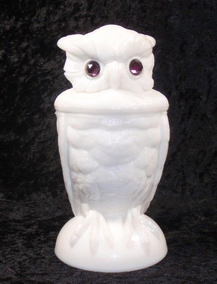 ATTERBURY MILK GLASS OWL JAR GLASS EYES