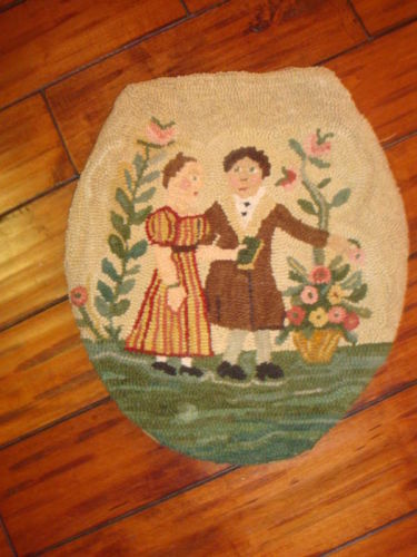 Title (ebay affiliate link): VINTAGE HAND HOOKED FOLK ART RUG TOILET COVER