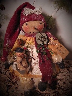 Title (ebay affiliate link): Primitive Folk Art Winter Snowman Snowgirl Doll~Vintage Jello Mold~Snowman