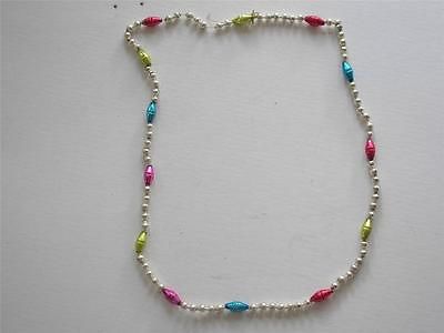 VINTAGE MERC. GLASS GARLAND 44" 3/8" & 1" SILVER, RED, BLUE & GOLD VERY OLD