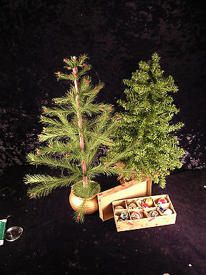 2 Christmas Tree, Feather and a Miniature 13 Miniature Vintage Ornaments Org Box