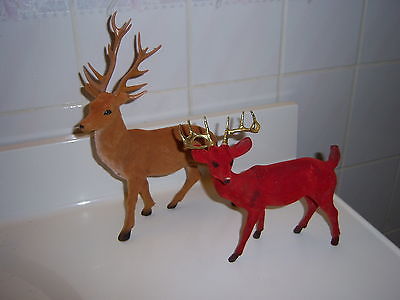 (2) Vintage Felt Standing Christmas Reindeer Figurines